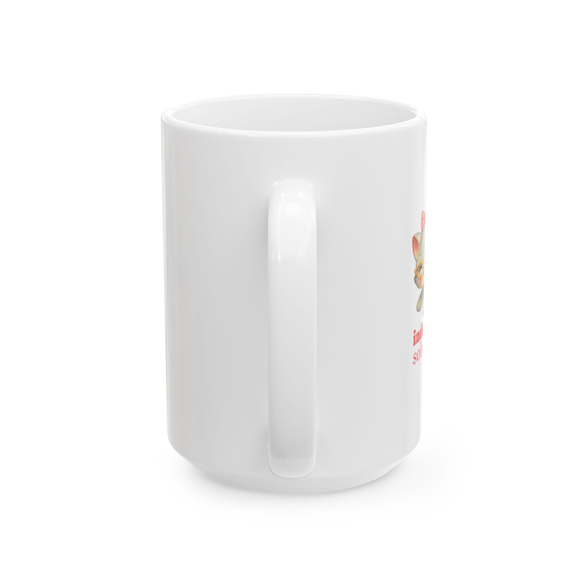 Independently Solvent Ceramic Mug — Retro 60s Girly Kitten with Bow, Pearls & Glasses (11oz/15oz)