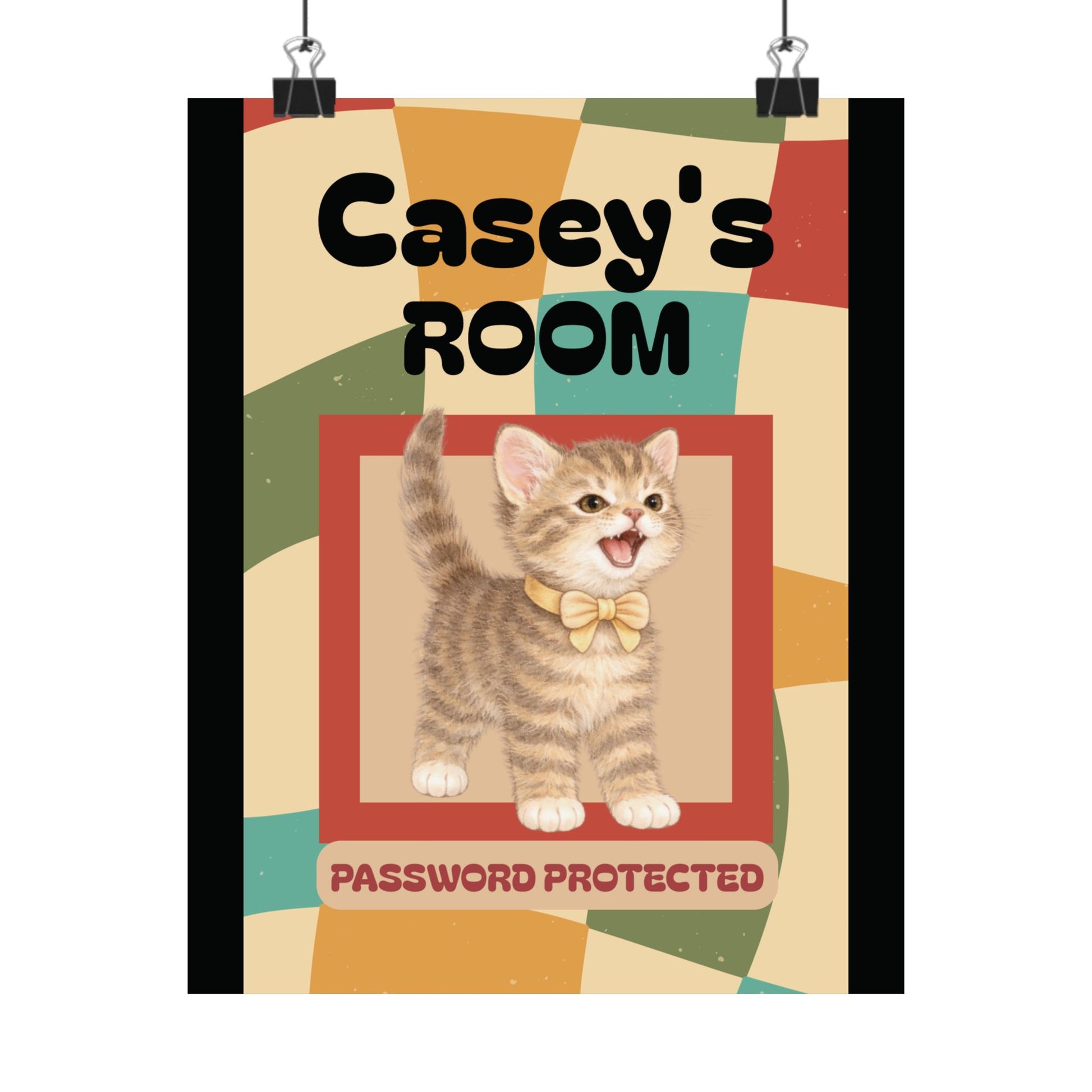 Personalized Cat Room Poster — "Password Protected" Matte Vertical Poster